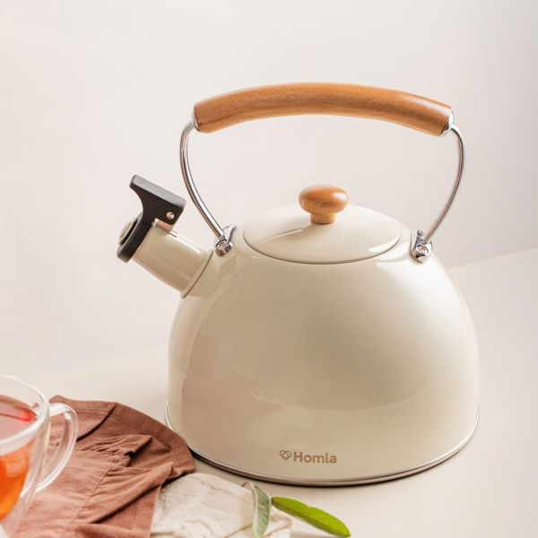 Czajnik VIRGEN śmietankowy z drewnianym uchwytem 2,5 l