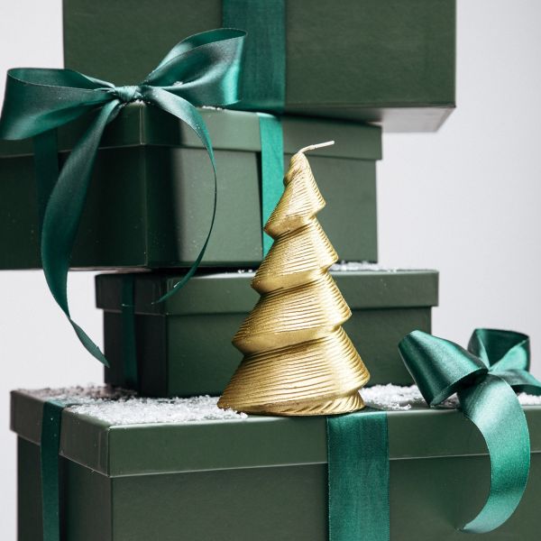 Świeca LAPLAND choinka złota 15 cm