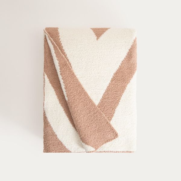 Koc KOBE gruby żakardowy z beżowym wzorem 130x170cm
